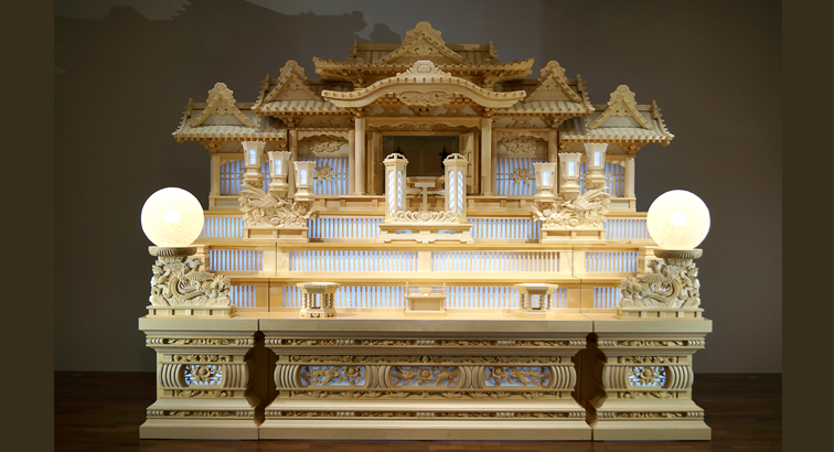 華鳳殿では40席から160席まで、ご利用の規模に合わせて自在に式場を形作れます。安全性を重視し場内は完全バリアフリー。式場とは別棟に受付を設け、式場内をより静寂で荘厳な空間に保ちます。