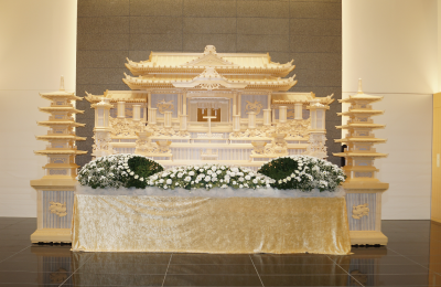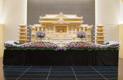 家族や本当に親しい方々だけで執り行われる「家族葬」。故人様を中心とした温かい葬儀を執り行うため、洗練された空間作りにこだわりました。